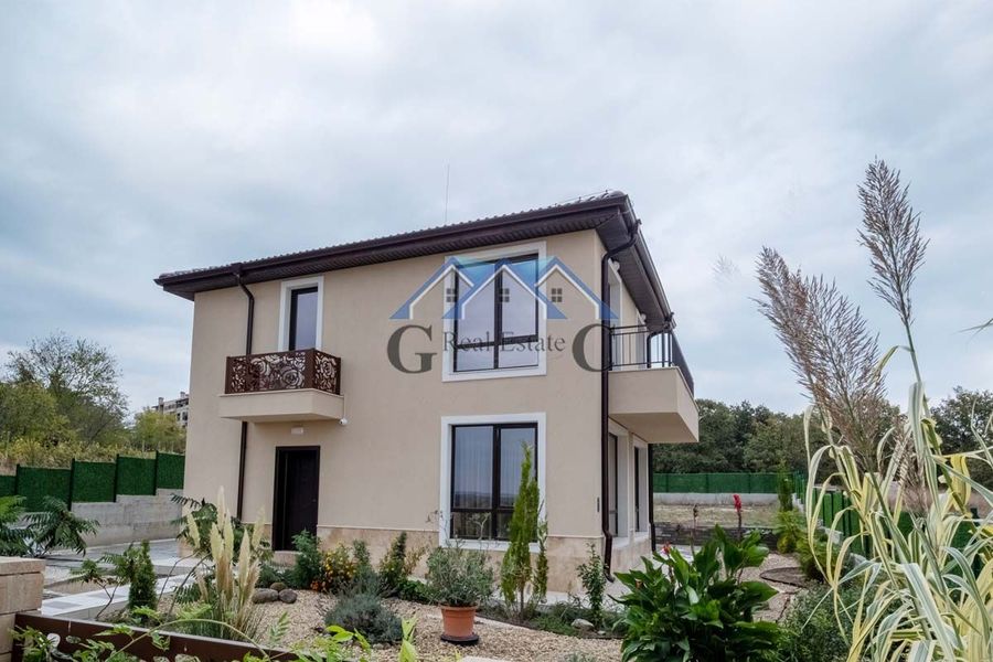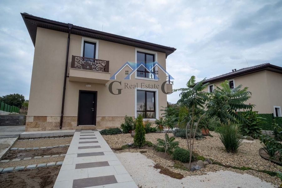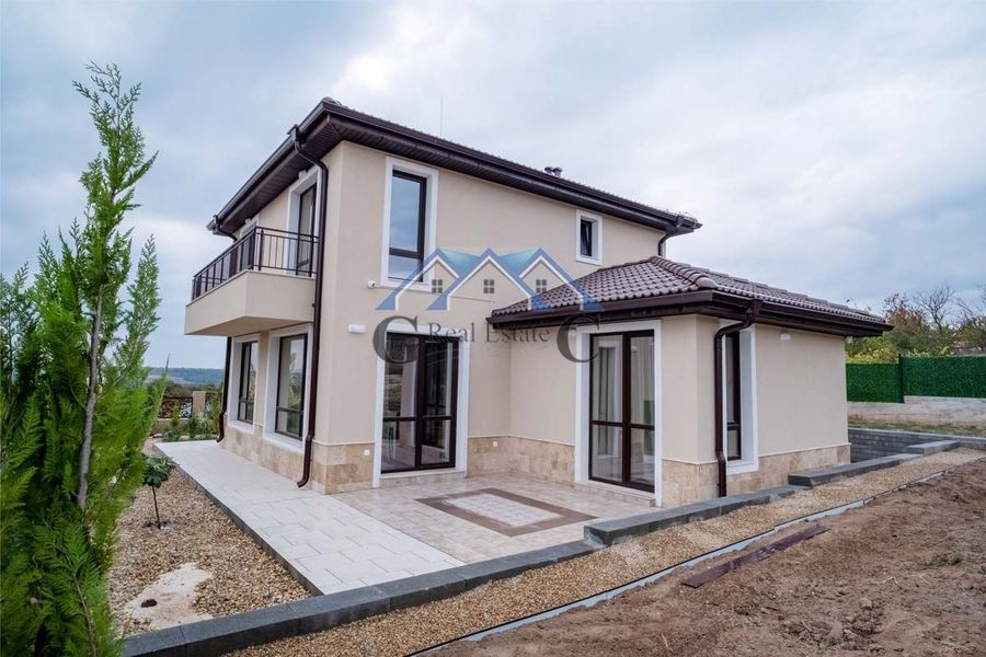 360000 евро с Акт 16, обзаведена. Реф. номер 24113663 А"Галя Консулт"продава нова двуетажна къща 158м2, земя 750м2, 2024г. Разпределение на ет.1: входно антре 6,25м2, всекидневна 33,39м2 с веранда, с...