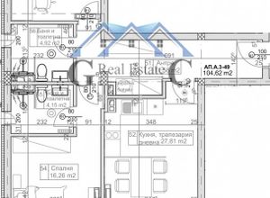 218000 евро Реф.№ 25073843 "Галя Консулт" продава тристаен апартамент 130м2, ет.5/7, 2025г. Чиста площ 105м2. Състои се от: антре 11,58м2, дневна с кухня и трапезария 27,81м2, спалня 16,26м2, кабинет 16,55м2, 2 бани с тоалет 4,92м2 и 4,15м2, тераса 7,22м2. Издава се по БДС. Изложение: югоизток. Предлага се гъвкава схема на разсрочено плащане. Могат да се закупят паркоместа и гаражи, разположени на четири нива с четири подхода за лесен достъп към жилищната част. Комплексът ще бъде от затворен тип с контро...