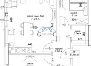 190000 евро Реф. Номер 25103900 ”Галя Консулт” продава тристаен апартамент 100,07м2, ет.2/7, 2027г. Издава се по БДС. В момента е на етаж 3. Състои се от: дневна с кухненски бокс, 2 спални, баня с тоалетна, килер, коридор и лоджия. Жилищна сграда се отличава с модерна архитектура и естетически съчетани фасадни материали, създаващи усещане за елегантност и уют. Фасадата е оформена с комбинация от естествени каменни облицовки и дървесни елементи, които подчертават изчистените линии и хармонията с околната ср...